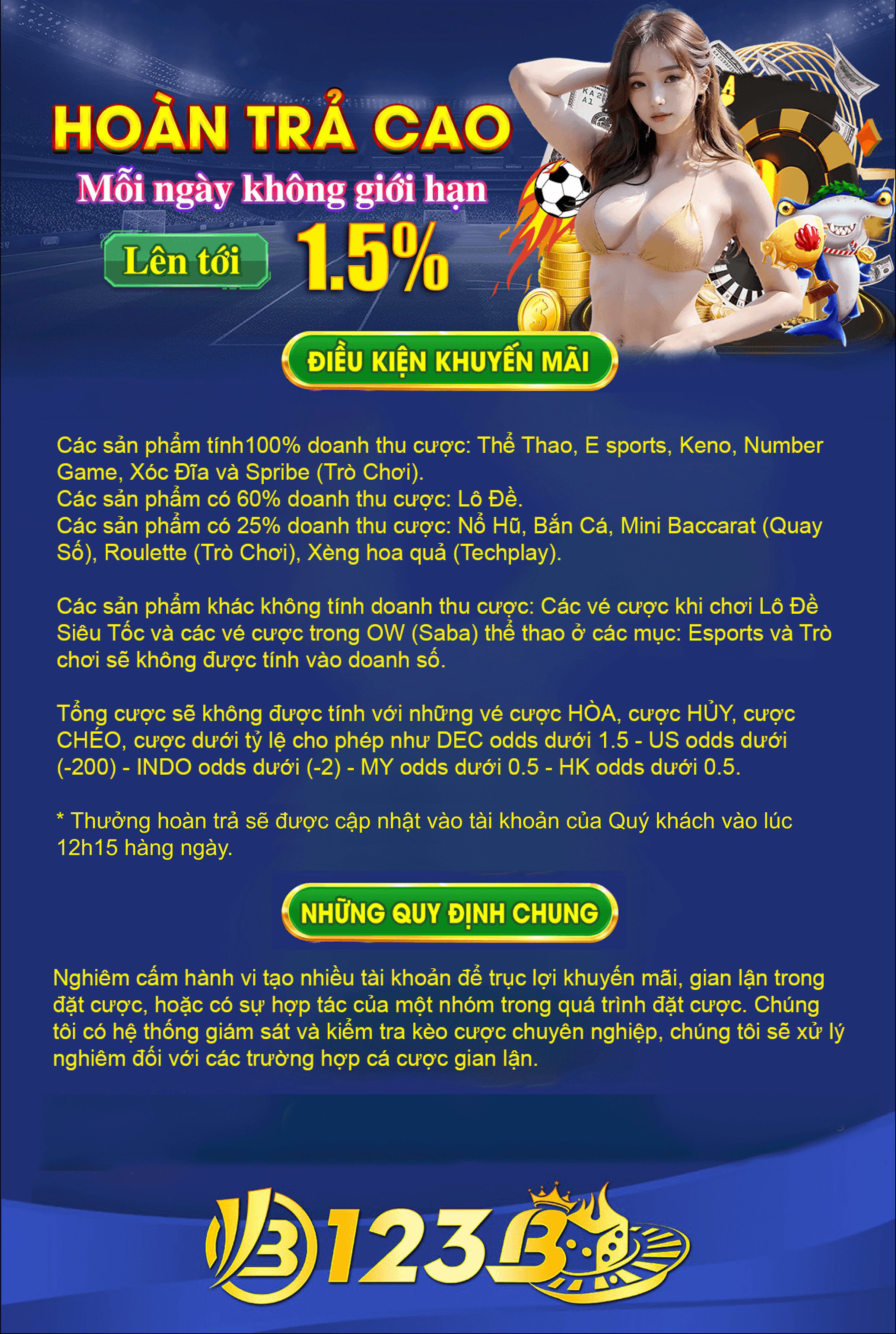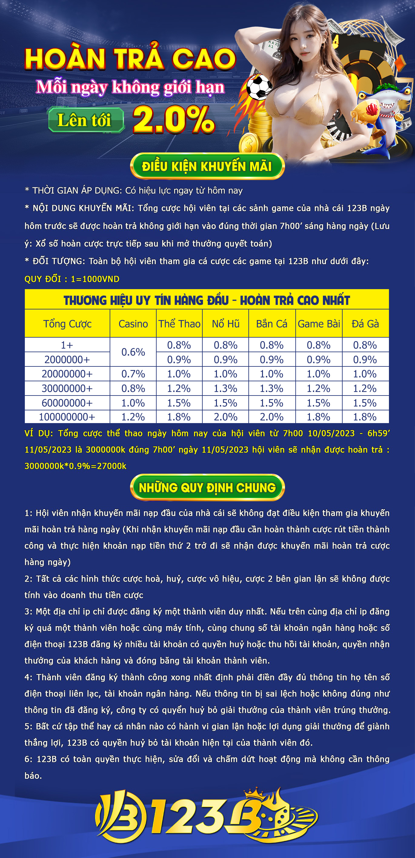 Hoàn tiền hàng ngày không giới hạn 2.0%, bất kể thắng thua